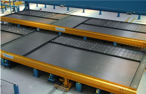 混凝土预制构件是在底模托盘上制造——从清洁托盘开始,一直到运出已经养护好的混凝土构件。底模托盘在各个工作站之间移动,完成生产线的每个生产步骤。底模托盘由一块钢板制成,钢板带有防振动、涂漆的焊接钢结构,模板的表面经过抛光打磨的处理。