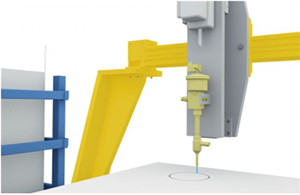 标绘器根据 CAD 数据获得的混凝土构件轮廓,以1:1 的比例用水溶性颜料,把轮廓绘制在底模托盘的表面。为了提高自动化程度,标绘器也可以配合机械手系统进行操作。