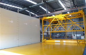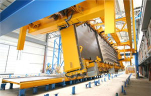 为了最充分利用车间面积和空间,底模托盘叠放在养护室内的搁架上。堆垛机把托盘运送到养护所需的架层,推进养护室;养护结束后再拉出养护室。根据生产线的设计,可以配备不同类型的堆垛机,以适应不同的需求。养护室也可以选配相应的供热系统。